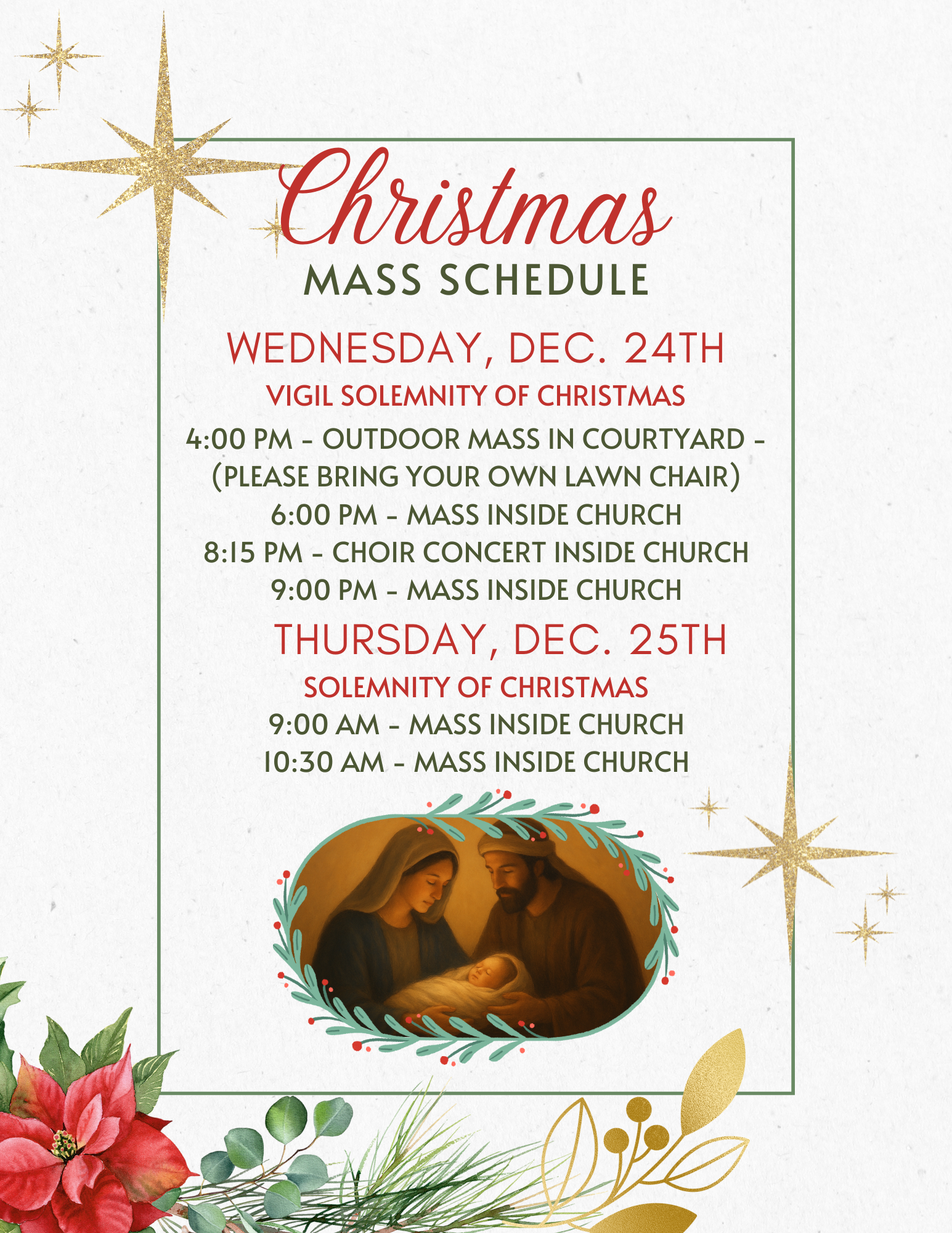 6:00 PM – MASS INSIDE CHURCH 8:15 PM – CHOIR CONCERT INSIDE CHURCH