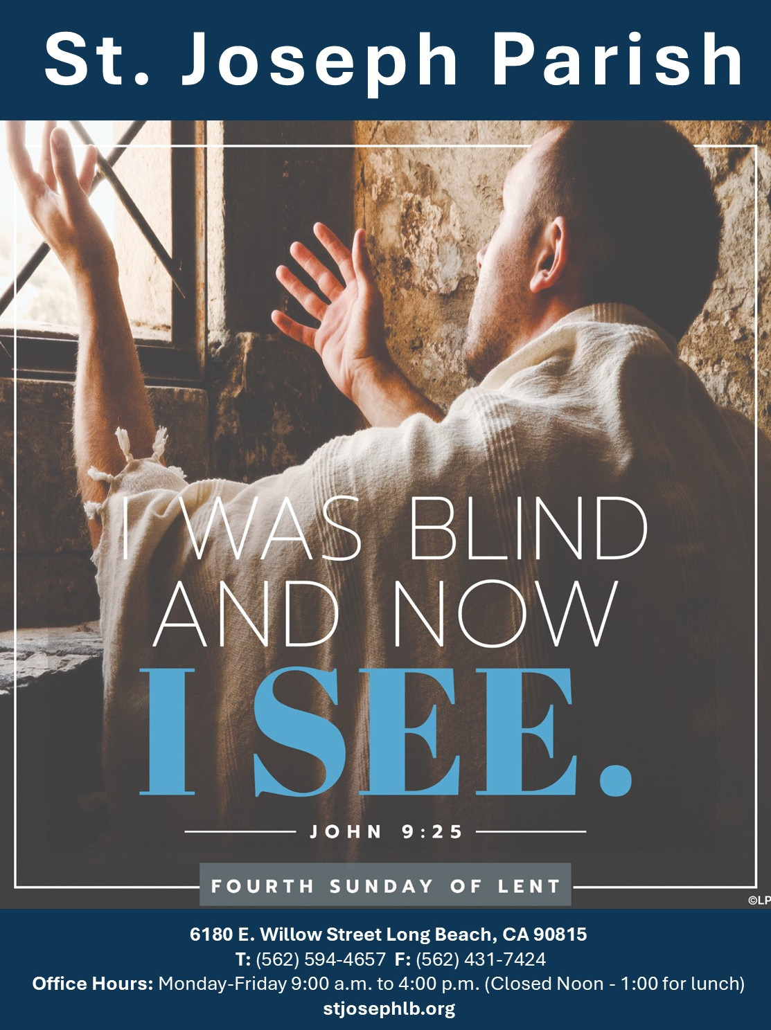 Welcome to the Fourth Sunday of Lent! Last week, we journeyed to Samaria and met the Samaritan woman who encountered Jesus at Jacob’s well. She moved from being ostracized by the community to becoming a great evangelist for the Lord. In this week’s Gospel passage, we meet many characters, including the disciples, neighbors, and the parents whose son was born blind, and after meeting Jesus, he’s healed of his infirmity. First, the man born blind moves from blindness to physical sight and then to spiritual insight into Jesus’s identity. Any malady or illness that is healed is an opportunity for us to acknowledge the divine intervention offered through Jesus Christ. Open our eyes Lord, help us to see!!